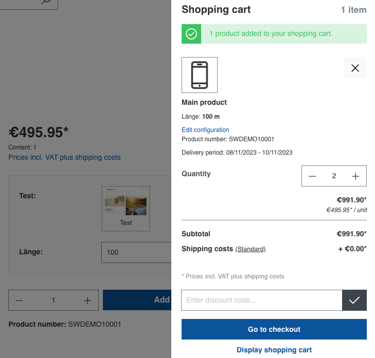 Sämtliche Zwischen-Berechnungen einer Konfiguration werden im Payload einer Bestellposition gespeichert. Diese können in einer Middleware abgegriffen und zur Weitergabe an Drittsysteme genutzt und aufbereitet werden.